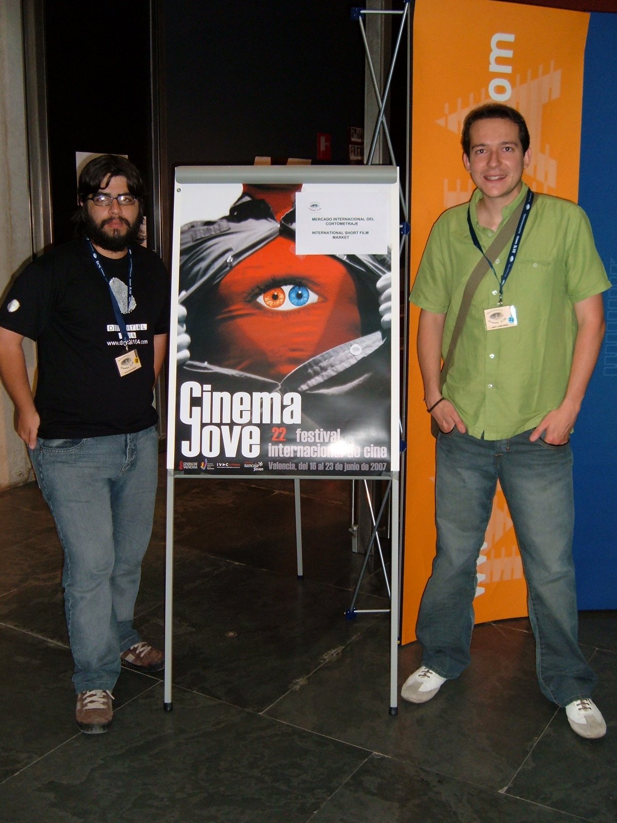 Bueno, pues aquí está la demostración de que estuvimos en el XIV Mercado Internacional del Cortometraje del Cinema Jove de Valencia (bueno, todavía estamos). Hoy concluye el mercado y aunque ha sido muy cortita la experiencia, apenas hemos estado un día, ha sido realmente muy intensa. Un mercado de cortos es como una feria en la que intentas vender tu trabajo (de ahí lo de MERCADO). Ese es el objetivo ideal, pero en la realidad, es sobre todo una forma de hablar con la gente que trabaja profesionalmente en esto del «cine en pequeño» y una forma de aterrizar en la realidad, de ver lo que se está haciendo en toda España y en el resto del mundo y de ver lo que está funcionando y lo cerca o lejos que estamos nosotros de las modas (que como en todo también mandan en las compras y ventas). Nos iremos con la sensación de haber aprovechado nuestra rápida visita… A ver si llega alguna buena noticia en las próximas semanas (al menos, que lleguen noticias, aunque no sean buenas). Hoy a mediodía aprovecharemos para hacer algo de turismo y de compras, lo que nos permita nuestro presupuesto, que básicamente será pasarnos por la sección de cine de autor de la FNAC… Volvemos mañana a Tenerife. Saludos desde Valencia.