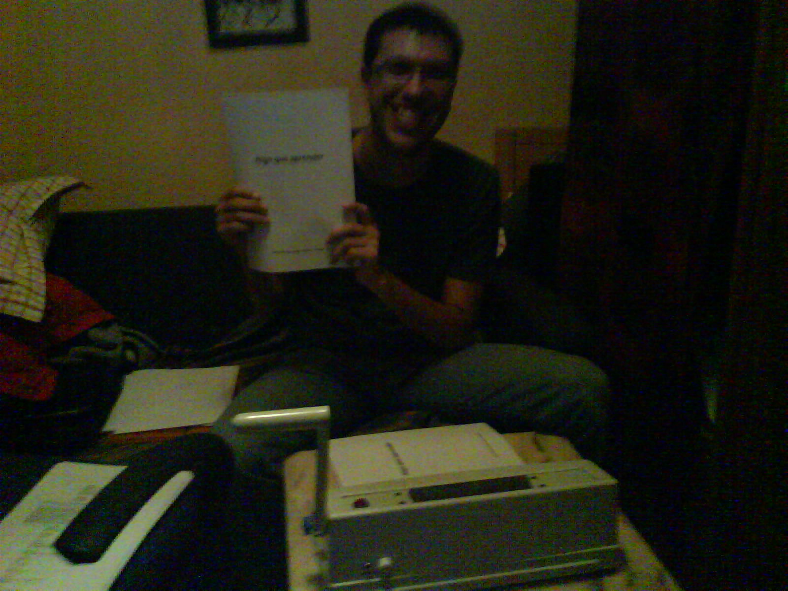Luego salieron por fin las esperadísimas (y retrasadísimas) ayudas al cine del Gobierno de Canarias. Teníamos varios guiones y proyectos que queríamos presentar, y al final, decimos echar el resto y dejarnos las pupilas delante del ordenador preparando 3 megaproyectos por quintuplicado. ¡Más de 2.000 folios en total! Porque para una cosa de estas no vale con el guión y ya está. no, hay que hacer decenas de papeles, planes de financiación, calendario de inversiones, declaración de intencioes… Hasta nos hemos comprado una encuadernadora de esas de gusanillo porque ya nos salía más rentable. Además, hemos descubierto que a Jonay casi le gusta más perforar los folios que dirigir… ¡estaba enganchado!