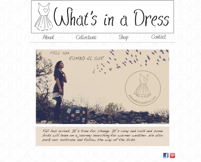 | Portada de la página web de What’s in a Dress con una de las fotografías de «Rumbo al sur». |