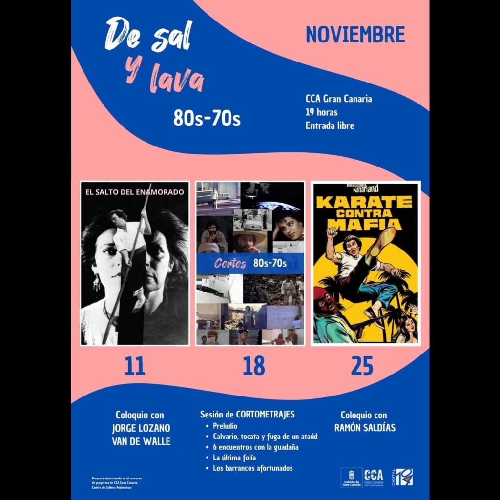 Llegamos a la recta final de nuestro viaje y lo hacemos adentrándonos en las décadas de los 80 y 70. DE SAL Y LAVA programa para noviembre tres sesiones más en las que visitaremos la cinematografía de un autor fuera de ese binomio capitalino en el que vivimos siempre en este Archipiélago; bucearemos entre cortos de las dos décadas; y tendremos un fin de fiesta de altura con la película de karatekas rodada en Las Palmas de Gran Canaria. ¿No te pica la curiosidad?